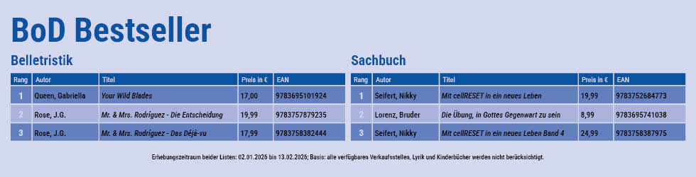 Eine groß angelegte Studie des Selfpublishing-Dienstleisters BoD mit über 3.600 teilnehmenden Autor:innen hat ergeben: Immer mehr Autor:innen setzen KI-Tools als Hilfsinstrument bei der Erstellung ihrer Bücher ein – beispielsweise bei der Recherche. Zugleich sehen sie die Qualität der Ergebnisse von