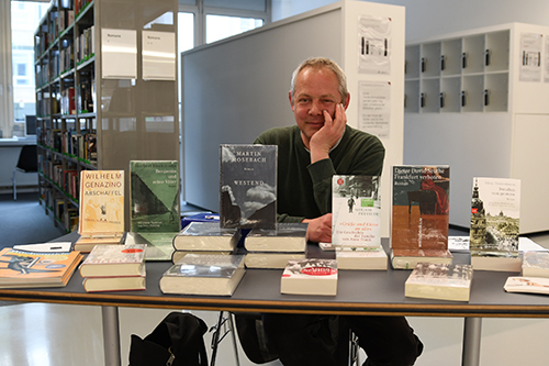 Zur Vernissage hatte Oliver Fründt, Büchergilde Gutenberg, einen Tisch mit den zehn Büchern aufgebaut; wer sie noch nicht besaß, konnte sie direkt erwerben.