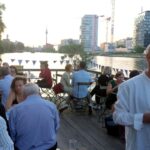 10 Jahre Galiani Berlin. Das Ereignis wurde gestern Abend im Fluxbau in Kreuzberg gefeiert. Die Oberbaumbrücke und das gegenüberliegende Spreeufer boten eine schöne Kulisse für das Fest mit mehr als 200 Gästen, darunter Autoren, Buchhändler und Journalisten. Auch zahlreiche Mitarbeiter des Mutterhauses Kiepenheuer & Witsch warem zum Gratulieren angereist.