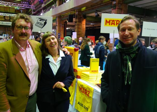 Ergänzt wird die Verkaufsmesse durch ein Lesungsprogramm im Halbstundentakt mit Autorinnen und Autoren wie Uljana Wolf, Ursula Krechel, Bov Bjerg, Teresa Präauer, Ulrike Almut Sandig und Joshua Cohen. Heute Abend um 19 Uhr steht ein Ukraine-Podium auf dem Programm, das gemeinsam mit dem PEN entwickelt wurde. Die Veranstaltung mit Marjana Gaponenko (Ukraine), Michail Schischkin (Russland), Volha Hapeyeva (Belarus) und Karl Schlögel ist auch im Livestream zu sehen. Wenn auch alle Lesungen ausverkauft sind, können bis Sonntagabend bis zu 10.000 Menschen die buchmesse_popup besuchen, so Gunnar Cynybulk. Kein Wunder, dass sich beide Initiatoren gestern sehr zufrieden äußerten.
