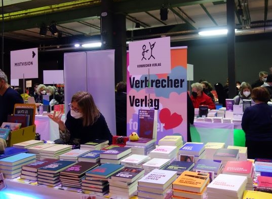 Gestern Mittag wurde im Werk 2 in Leipzig die dreitägige buchmesse_popup eröffnet. In der Halle A eines Industriegebäudes aus dem 19. Jahrhundert, das heute für kulturelle Veranstaltungen genutzt wird, präsentieren gut 60 Verlage ihre Novitäten und ausgewählte Backlisttitel – von Argument bis Zweitausendeins. Mit dabei sind kleinste Unternehmen wie der Leipziger Liesmich Verlag, aber auch große wie die Aufbau Verlage, C.H.Beck, Hanser, Jung und Jung, Klett-Cotta, Verbrecher und Wagenbach.