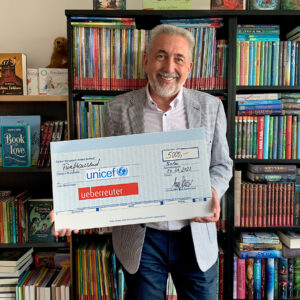 Am heutigen Weltkindertag übergibt der Ueberreuter Verlag einen Spendenscheck in Höhe