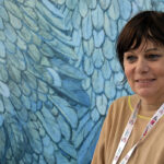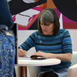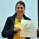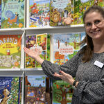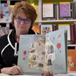 Wir begegnen Linda Wolfsgruber, die am Stand der Schule für Kinderbuchillustration in Sarmede Mappen sichtet. Von ihr werden wir im Herbst u.a. das Bilderbuch Sieben. Die Schöpfung bei Tyrolia sehen, für das sie jeweils sieben Bilder für jeden Tag der Schöpfungsgeschichte gezeichnet hat. Außerdem erscheint bei Jungbrunnen Warum der Mond keine Kleider hat, eine Geschichte, die Linda Wolfsgruber häufig bei ihrer langjährigen Arbeit in Workshops mit Kindergartenkindern in Südtirol erprobt hat.