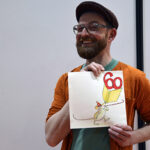 Danach wurde viel getrunken und etwas weniger gezeichnet, denn das hatten eine Reihe von Illustrator:innen bereits am Vorabend erledigt: Unsere Bilderstrecke am Ende dieses Beitrags zeigt einige Glückwunsch-Bilder zum 60. Geburtstag der Bologna Children’s Bookfair samt ihrer Urheber:innen, die überwiegend zur Messe-WG gehören, die sich Familienzimmer nennt.