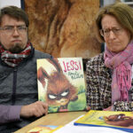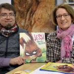 Bei Coppenrath kommt ein neues Buch des Dream-Teams Kai Lüftner und Wiebke Rauers: Jessi, die Raubhäsin, ist eine rebellische Figur, die zunächst lieber auf sich allein gestellt verschiedenen Tieren im Wald in brenzligen Situationen hilft, sich schließlich aber doch mit dem Wehr-Schwein anfreundet. Nicola Dröge, Programmleiterin Kinder- und Jugendbuch, und Geschäftsführer Lambert Scheer sind von dem Titel so überzeugt, dass sie ihm ein Plüschtier in der Spiegelburg zur Seite stellen und einzig aus Solidarität mit ihrer neuen Bilderbuch-Heldin für einen kurzen Moment grimmig in die Kamera gucken.