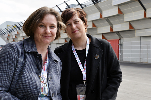 Anke Kuhl hat bereits eine Reihe von Workshops für Schulklassen in Bologna absolviert, bevor sie die Buchmesse erkundigt, und Klett Kinderbuch-Verlegerin Monika Osberghaus kann schon das Cover eines neuen Buchs der Illustratorin zeigen – wieder nach einem Text von Katharina van der Gathen, und wieder mit einem ganz anderen Thema: Radieschen von unten ist Das bunte Buch über den Tod für neugierige Kinder.