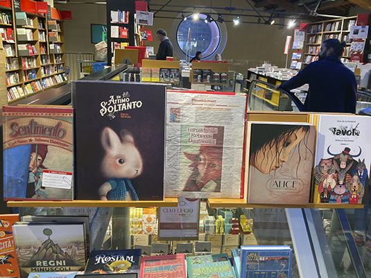 Und erneut habe ich feststellen können, dass Buchhändlerinnen wie Jutta Bummel von der Buchhandlung Eulenspiegel in Hochheim am Main einfach eine umwerfende Titelkenntnis haben, ebenso wie eine ansteckende Begeisterungsfähigkeit. Sie war mit der Illustratorin Angela Wittchen nach Bologna gereist, und in der Messebuchhandlung konnte ich mich kurz mit beiden austauschen.