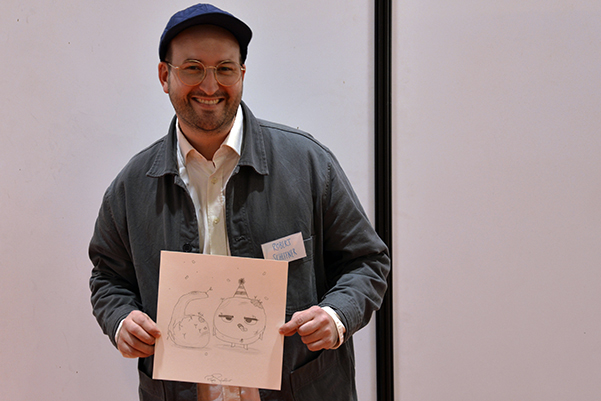 Danach wurde viel getrunken und etwas weniger gezeichnet, denn das hatten eine Reihe von Illustrator:innen bereits am Vorabend erledigt: Unsere Bilderstrecke am Ende dieses Beitrags zeigt einige Glückwunsch-Bilder zum 60. Geburtstag der Bologna Children’s Bookfair samt ihrer Urheber:innen, die überwiegend zur Messe-WG gehören, die sich Familienzimmer nennt.
