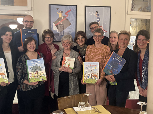 Gerstenberg feiert bereits 20 Jahre Wimmlingen, Autorin und Illustratorin Rotraut Susanne Berner ist nach Bologna gekommen und begegnet an einem Abend u.a. den zahlreichen LizenznehmerInnen ihrer Wimmelbuch-Welt. Lizenz-Chefin Ulrike Bastong freut sich, ihnen auf der Messe u.a. eine Neuheit zeigen zu können, die bei uns im Juli erscheint: Zuhause in Wimmlingen zeigt einen Tag in dem großen Wimmlinger Wohnhaus und im Garten. Erstmals kann man in die einzelnen Zimmer spazieren, sodass man die Wimmlinger Hausgemeinschaft noch besser kennenlernt.