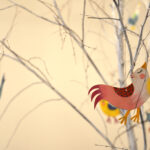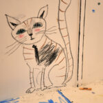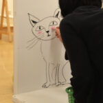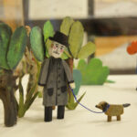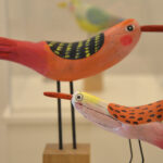 Neben Buchillustrationen sind auch freie Arbeiten zu sehen, wie die Streichholzschachteln, in die die Künstlerin kleine Welten aus Papier installiert, außerdem Vögel aus Papier oder Holz sowie eine Pizzakatze aus Stoff, die zum gleichnamigen Bilderbuch im Peter Hammer Verlag gehört – dafür hatte Antje Damm erstmals den Text eines anderen Autors illustriert: Will Gmehling war ebenfalls zur Vernissage angereist.