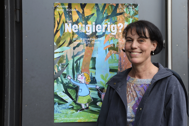 Gestern wurde im Bilderbuchmuseum auf Burg Wissem in Troisdorf die Ausstellung „Neugierig?!“ eröffnet. Sie zeigt die große Bandbreite des Schaffens der Illustratorin Antje Damm: „Für ihre Arbeit ist die eigene Neugier ein besonderer Ansporn – sowohl in der gestalterischen als auch in der inhaltlichen Umsetzung“, so Museumsdirektorin Pauline Liesen. „Somit weiß man bei Antje Damm nie, was als nächstes zu erwarten ist, weshalb die Bücher, die unter ihren Händen entstehen, oftmals sehr unterschiedlich in Erscheinung treten.“
