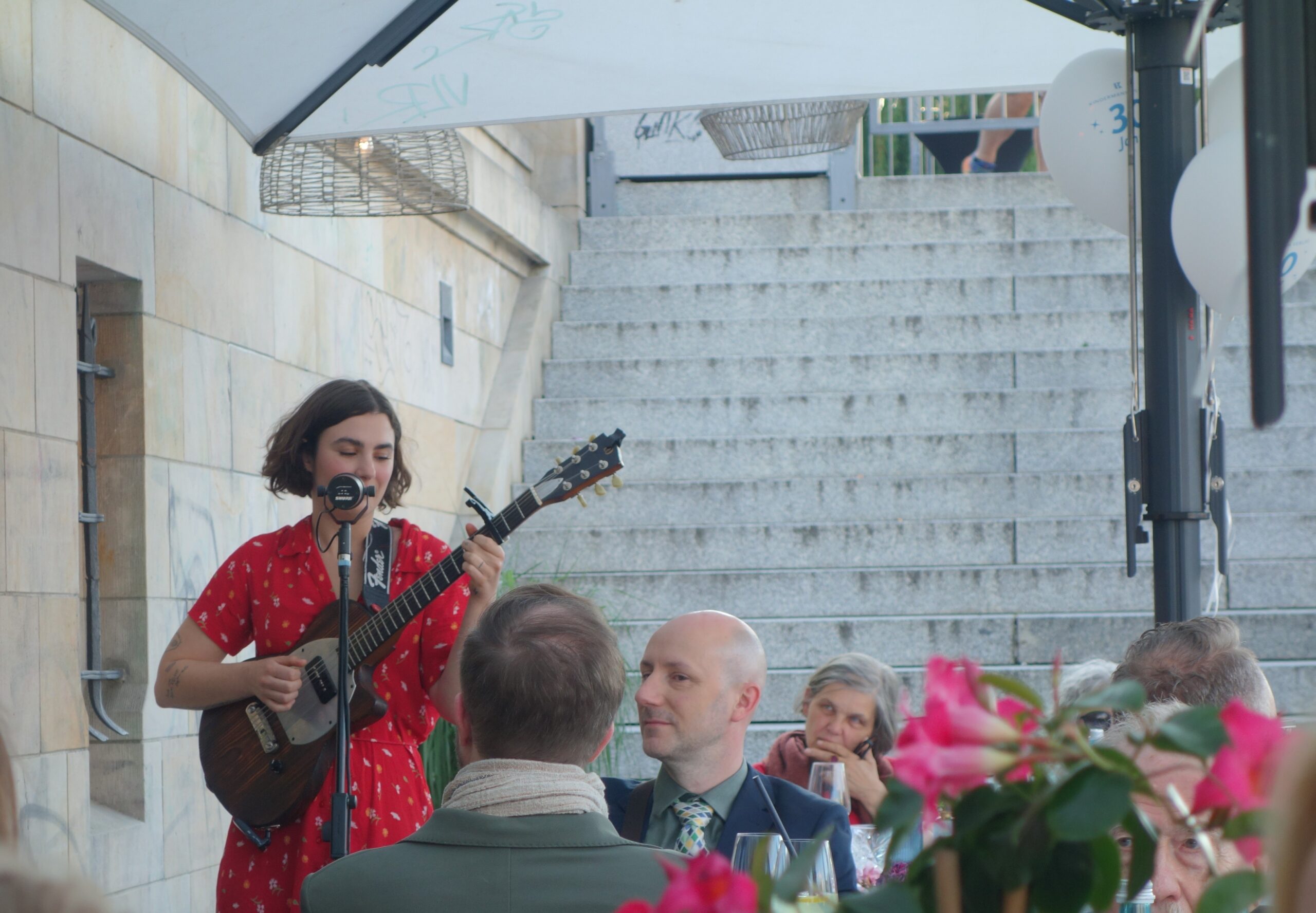 Die Musik der jungen Sängerin Morea und die mediterrane Atmosphäre auf der Terrasse gaben dem Abend einen entspannten Rahmen. Später wurde vor der Spreekulisse noch lange getanzt und geredet. Bleibt die Frage nach dem Herbstprogramm. Dann erscheint unter anderem in der Reihe Poesie für Kinder ein Sammelband mit „Gedichten für schöne Tage“, illustriert von Sabine Wilharm. Der passende Titel: Herzlichen Glückwunsch!