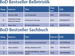 News Dark Romance von Dillie Moreno auf der BoD-Bestsellerliste Neues Jahr, neues Ranking: Auf der Belletristik-Bestsellerliste des Selfpublishing-Dienstleisters BoD Weiterlesen 7. Januar 2025 Keine Kommentare