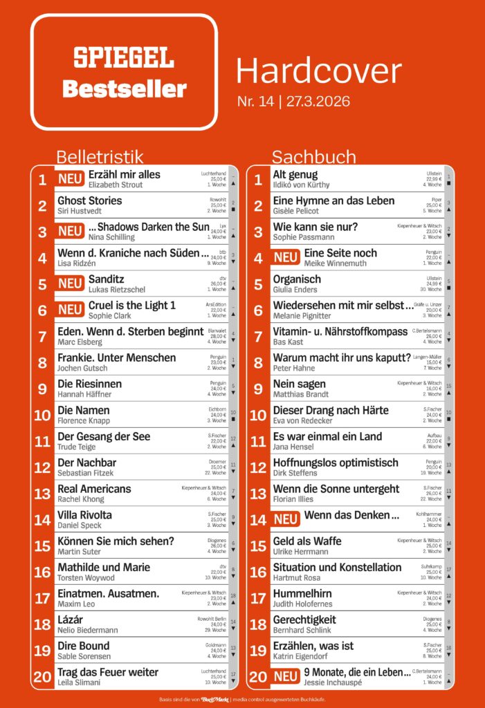 - wöchentlich Bestseller Belletristik und Sachbuch Hardcover, Medienpartner DER SPIEGEL